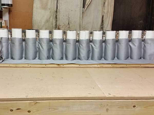 Stress Relieving Pads are used to slow down the cooling process of heated steel during fabrication. This process helps eliminate stress cracks from rapid cooling. Insulated pads are designed and fabricated for reuse.